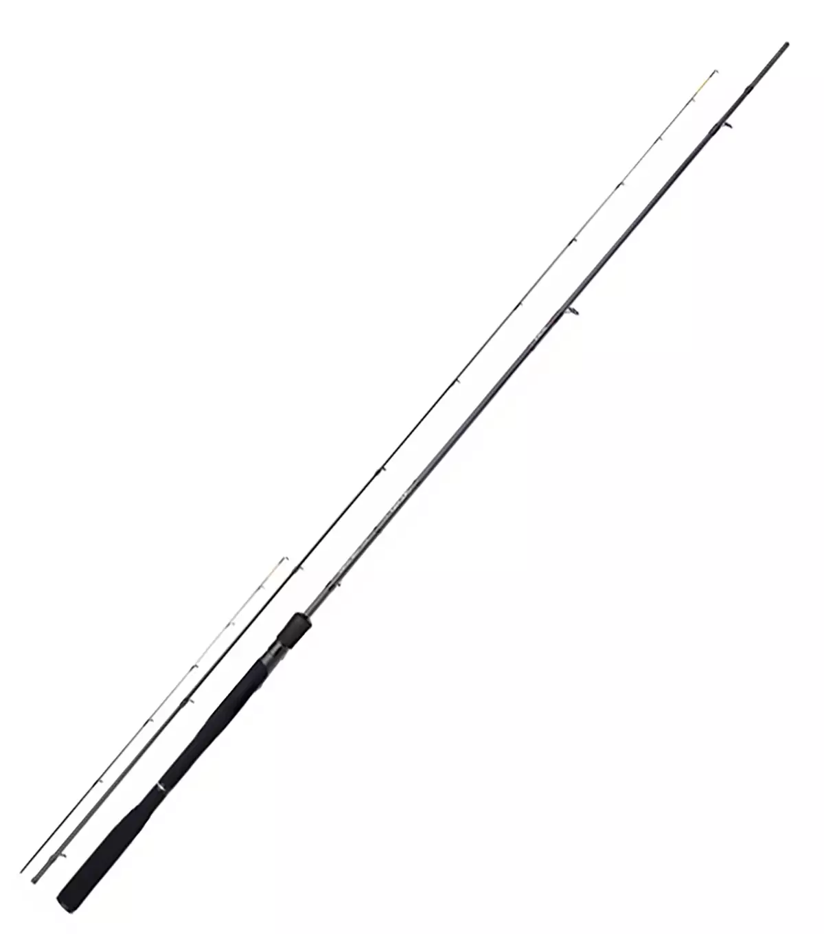 The rod is equipped with Shimano Hardlite guides, chosen to optimize the performance of the carbon blank. Additionally, it features a hooded screw-down DPS reel seat and an ergonomic EVA handle. The rod's appearance is sleek, with a dark carbon grey blank accented with red highlights, making it visually appealing as well. Two interchangeable feeder tips (quivertips) are included for different conditions.