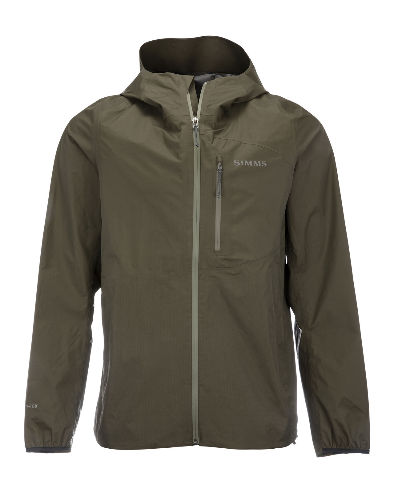 Simms Flyweight Shell Jacket is fishing and outdoor jacket made out of GORE-TEX PACLITE® PLUS. Paclite Plus provides maximized protection and best wearing comfort in a light weight, packable shell for demanding outdoor activities.