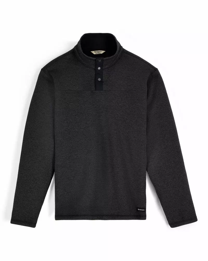 Simms Harbour Sweater Black Heather The Simms Harbour Sweater is designed to provide warmth and comfort in cool and windy conditions, combining a stylish appearance with the performance of durable, flexible fleece material.