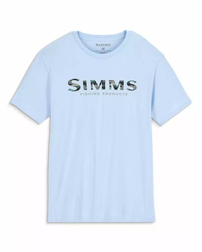 Simms Shroud Fill Logo T-Shirt Sky Blue classic Simms style meets a comfortable cotton blend, offering a pleasant wearing experience.