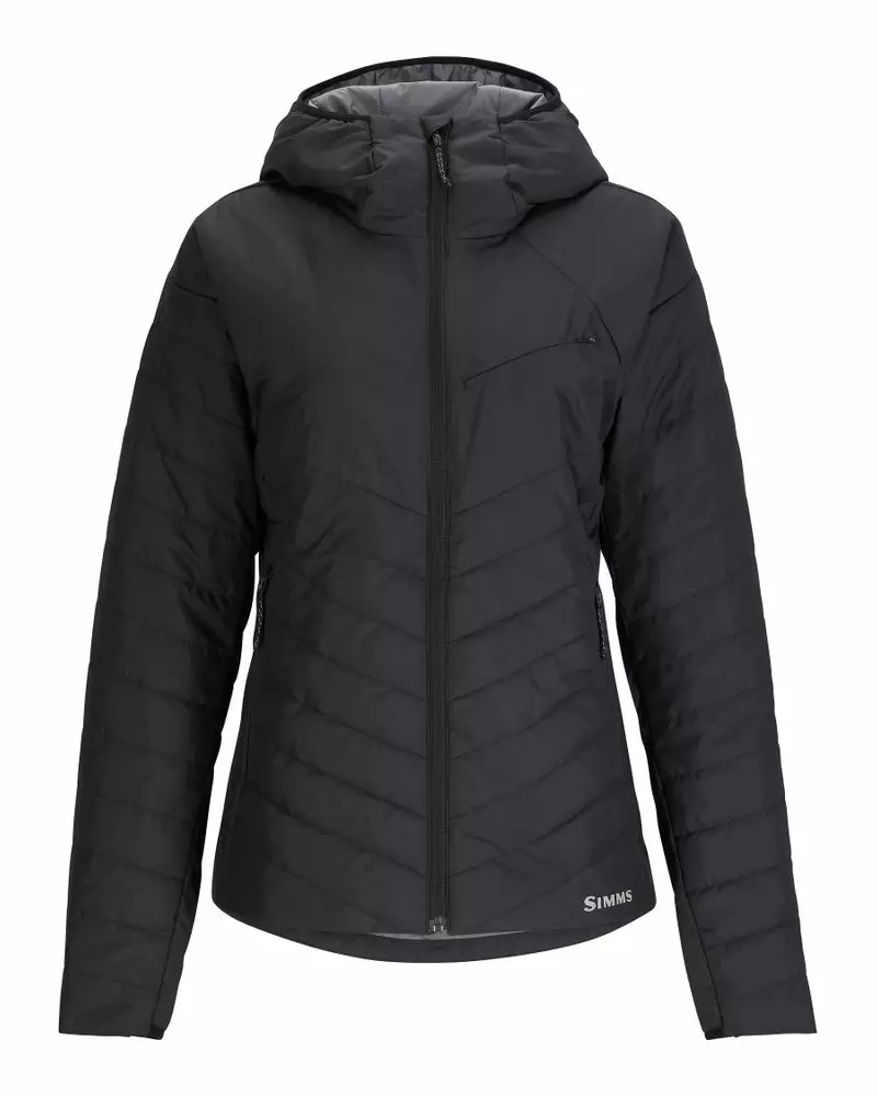 Simms Women's Fall Run Hoody Black is a lightweight and warm synthetic down jacket for women, designed to provide excellent insulation and comfort in cool conditions. This jacket is a perfect choice to wear on its own or as a layering piece, for example, with waders or other outdoor clothing.