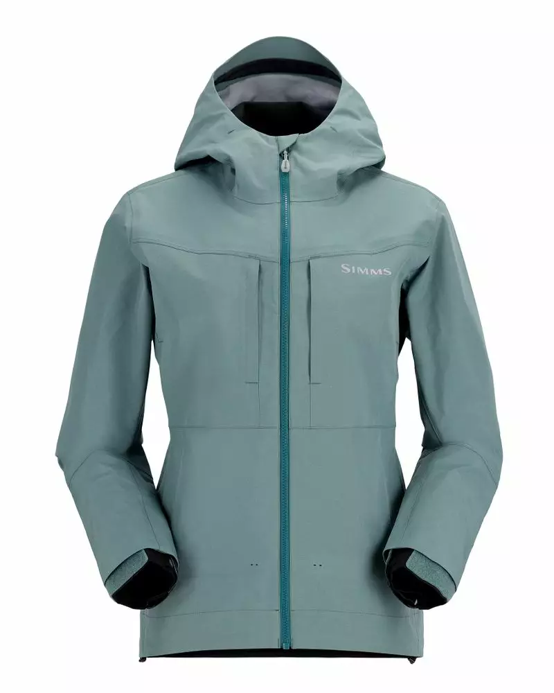 Simms Women's G3 Guide Jacket Avalon Teal ushering in the next phase of uncompromising fit, function, and performance, this jacket takes high tech to the next level with a waterproof 3-layer GORE-TEX build that boosts mobility and defies the elements.