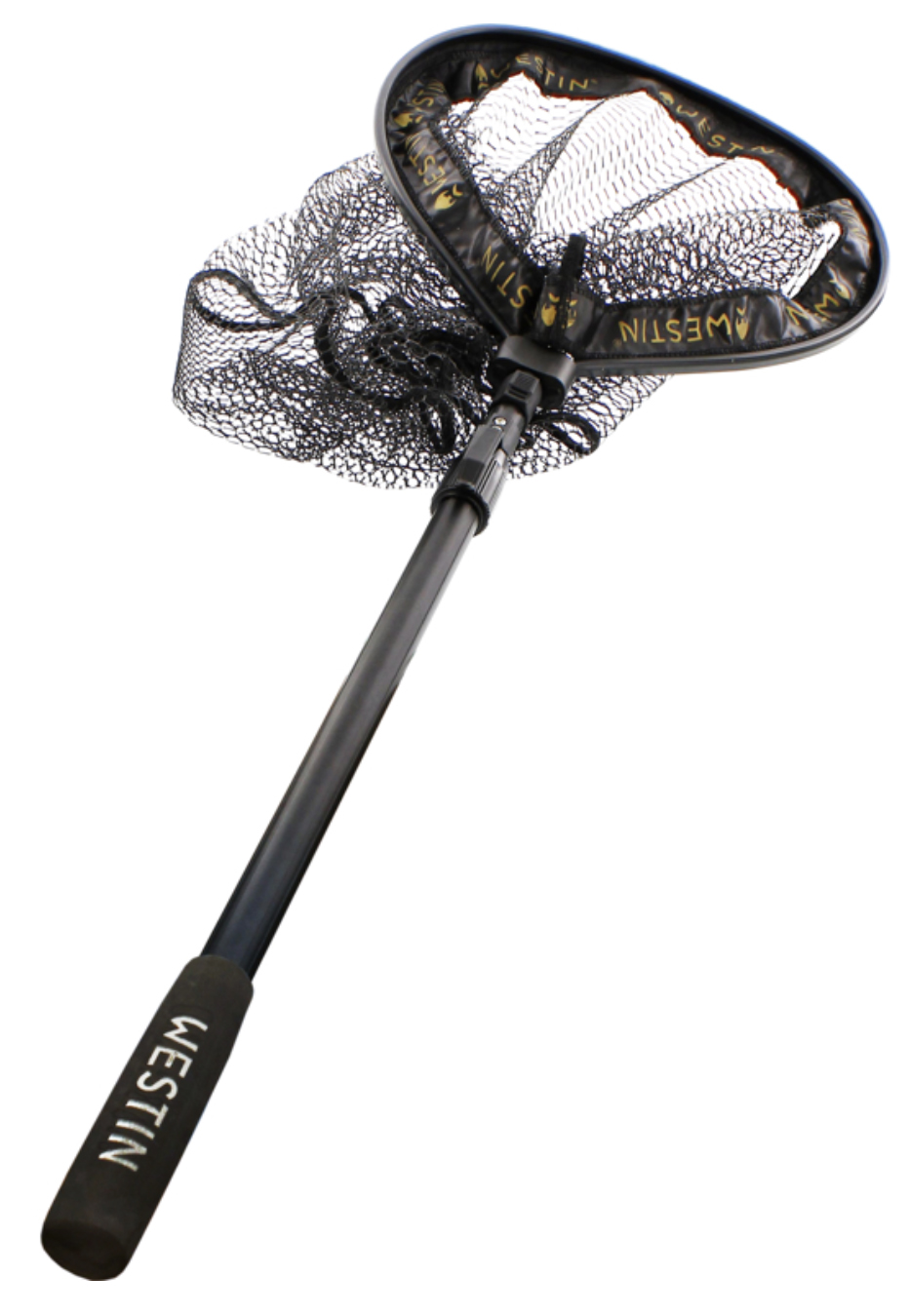 Westin W3 CR Adjustable Landing Net S - Be ready in seconds and land big fish safely with the W3 C&R Adjustable Landing Net. This lightweight and innovative net folds down for compact storage and extends for added reach. It opens easily with one hand and one swing, and it stays locked in position until the push button is engaged to fold it back up. A rubberized, tangle-free mesh is gentle on the fish, reducing damage to scales and minimizing slime loss. Big mesh on sides and smaller on bottom ensure minimal resistance in the water.