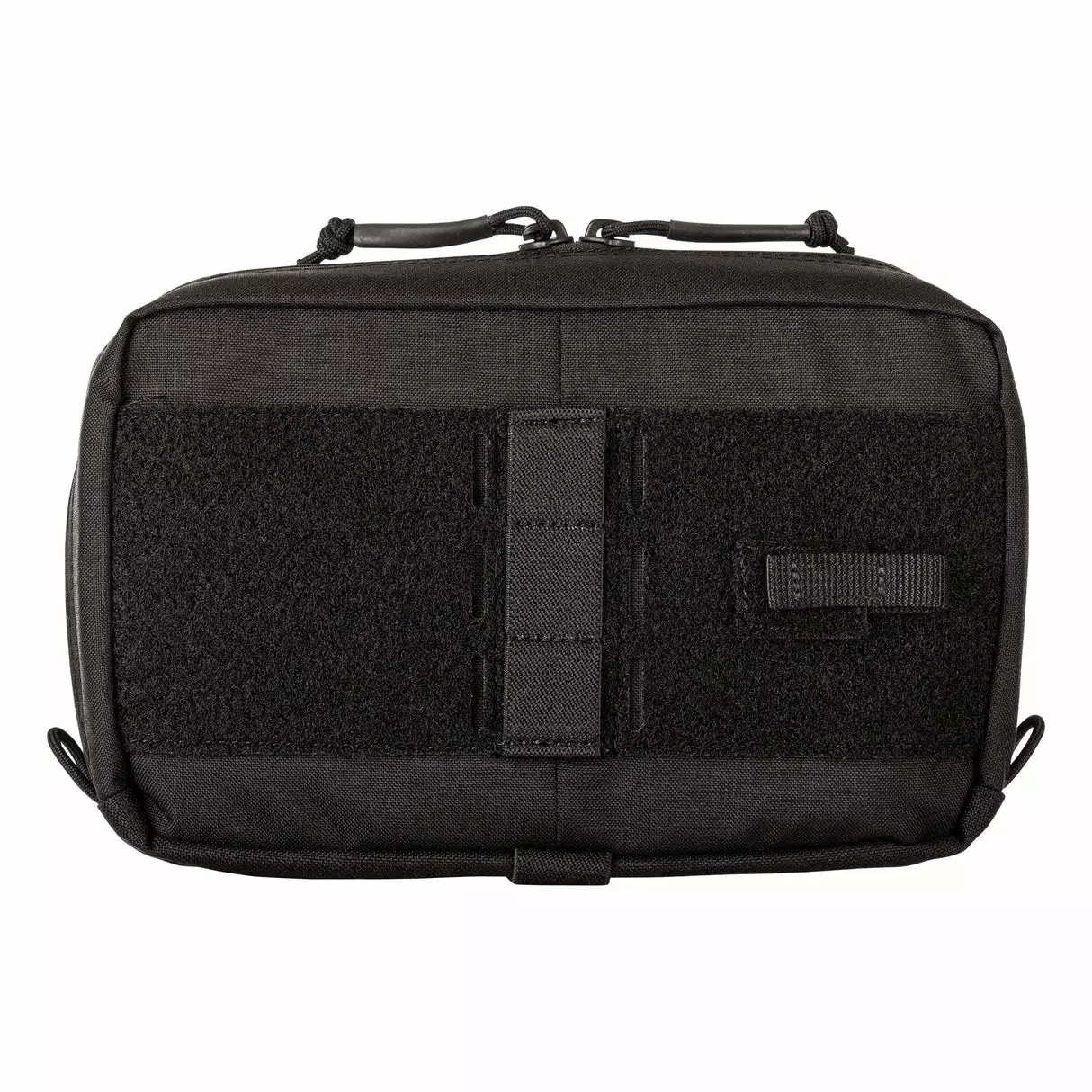 5.11 Drop Down Utility Pouch Black is a tactical utility pouch designed to be attached to a plate carrier or backpack. It is made from durable 500D nylon and measures approximately 14 x 23 x 7 cm. The pouch fully opens, making it easy to access your gear.