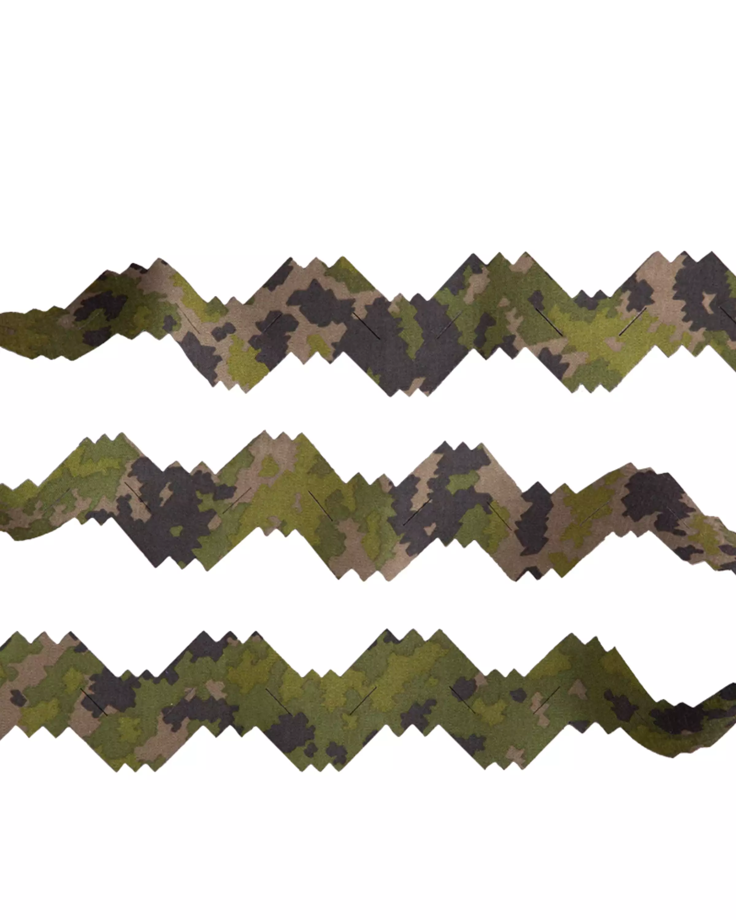 The main features of the product include its practicality and versatility. The laser-cut strips provide precise and durable camouflage suitable for various environments. The materials have been carefully selected to ensure they withstand use and retain their properties over time.
