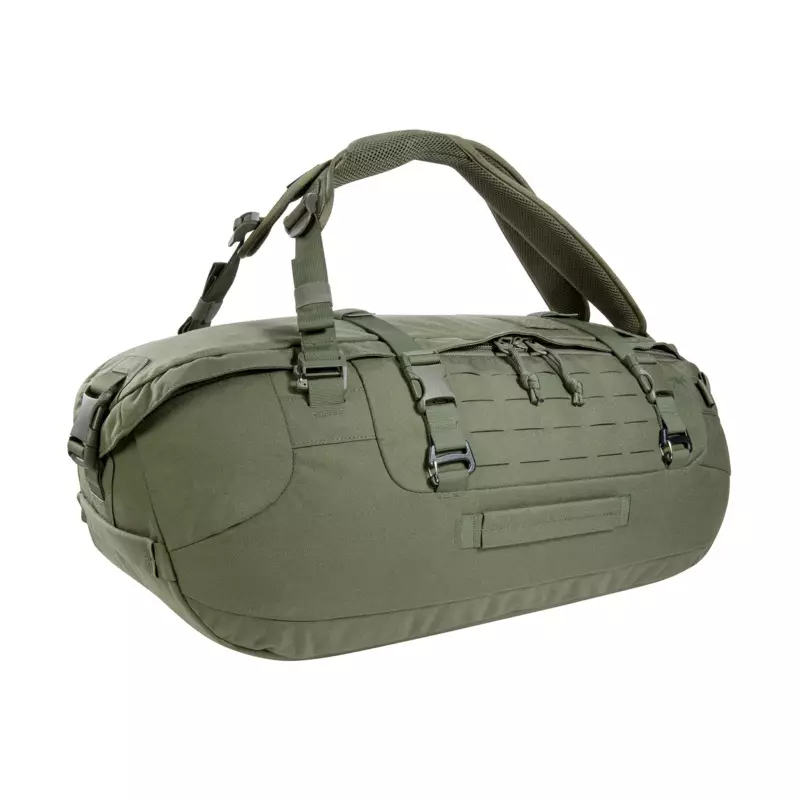 Tasmanian Tiger Duffel 45 olive is a durable gear bag designed for versatile use. The bag has a capacity of 45 liters and is made from highly durable 700 denier Cordura fabric.
