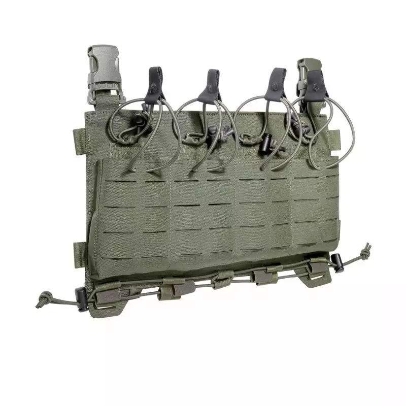 Tasmanian Tiger PC Mag Panel LC M4 IRR is a replaceable front panel designed for use with TT Plate Carrier MK III, TT Plate Carrier LC, and TT Plate Carrier QR SK Anfibia MK II plate carriers. This panel includes three (S-M) or four (L-XL) fixed magazine pouches suitable for M4, G36, PMAG, Steyr, and similar magazines.